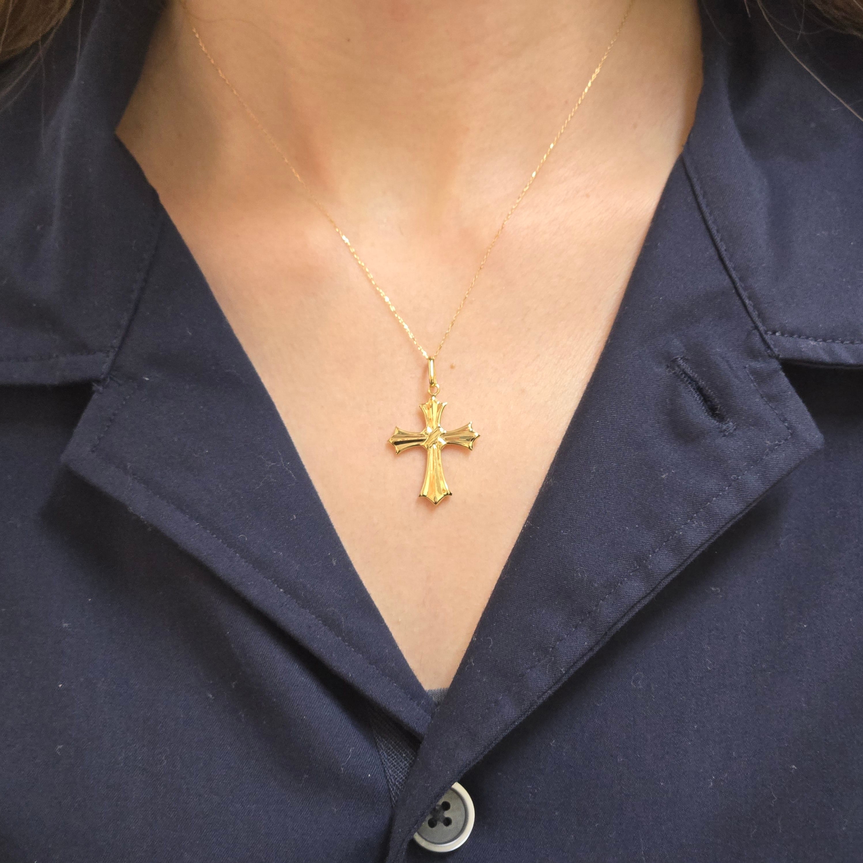 シンプルながらも存在感のある十字架は、見る人の心を惹きつけ、あらゆるシーンで自然に引き立つことでしょう。