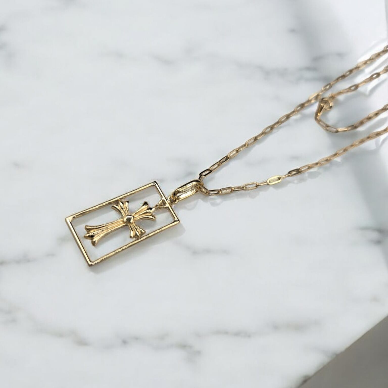 十字架のシンプルさが、存在感を高めつつも、誰でも気軽に楽しむことができるアイテムに仕上がっています。