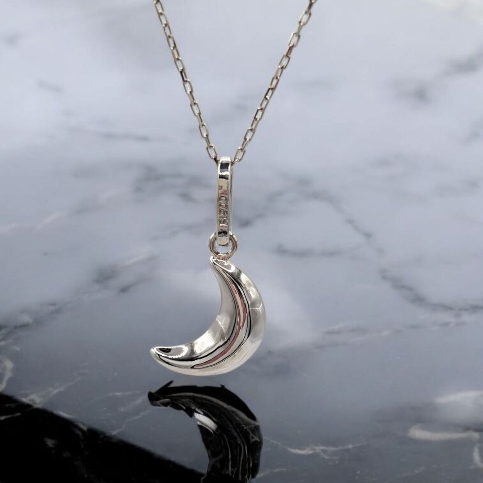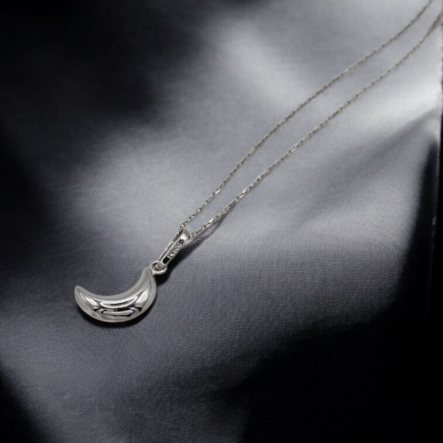 このPt900月ペンダントは、ぷっくりとした厚みと可愛らしい月のデザインが特徴的な魅力あふれるアイテムです。