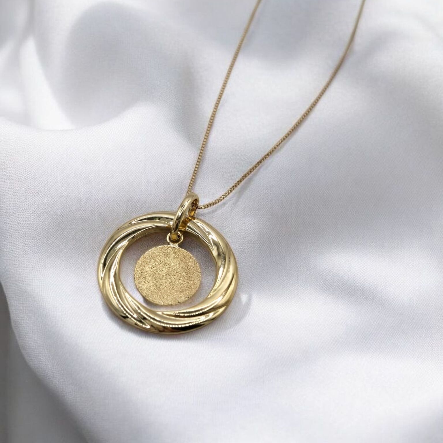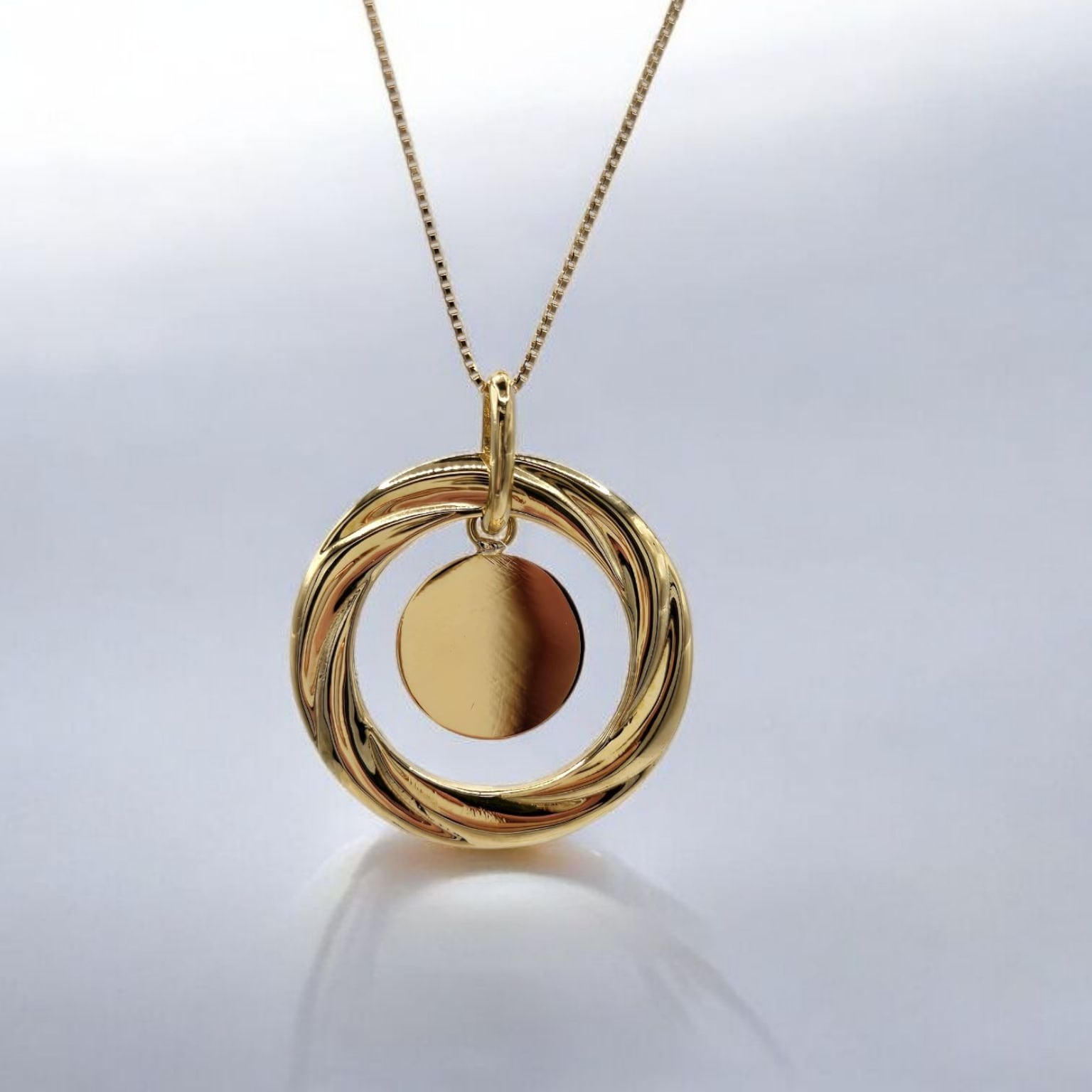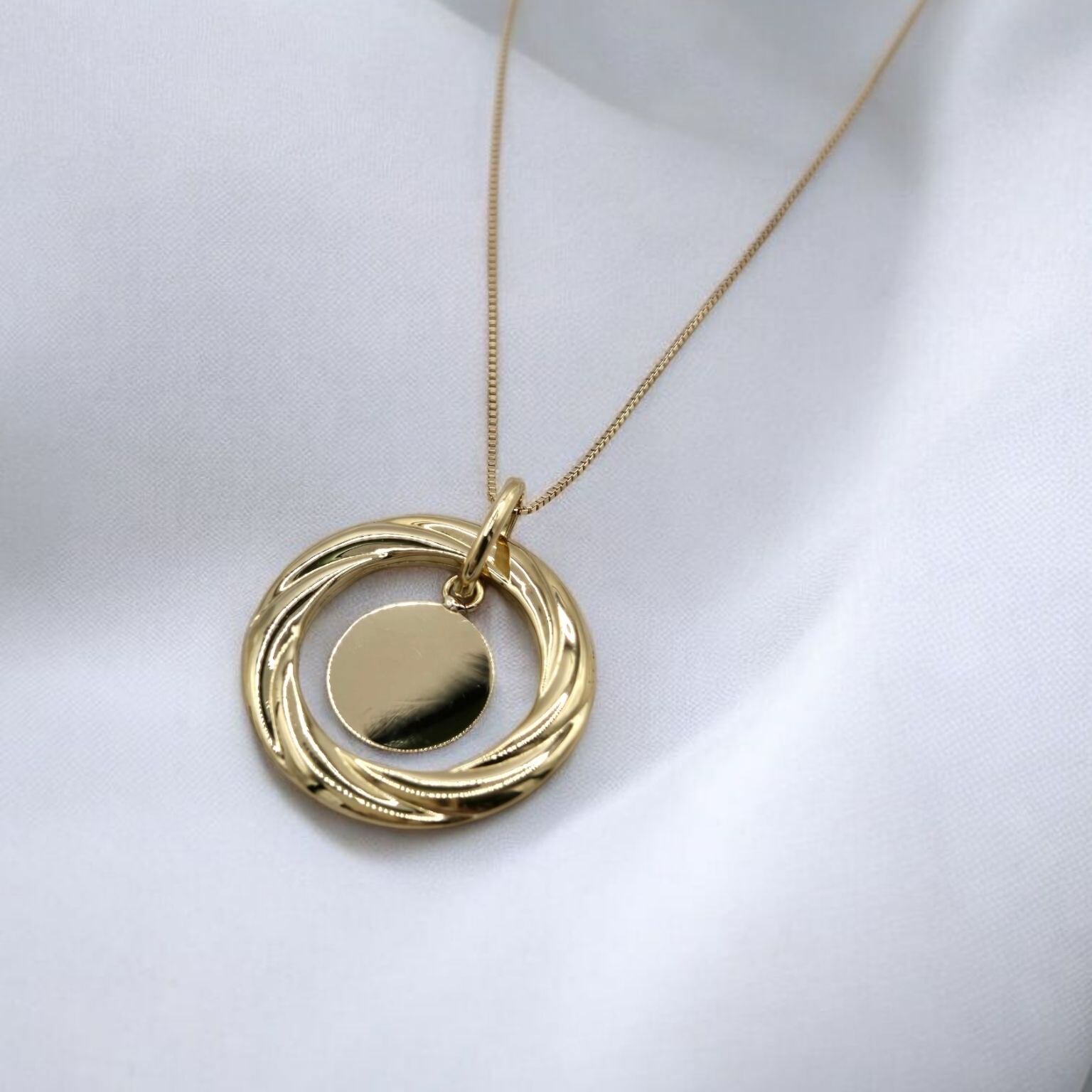 こちらのペンダントは丸型デザイン枠で、ウェーブの美しいラインが特徴的です。