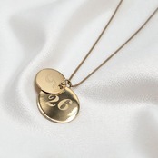 2つの丸型パーツに誕生日をレーザーの飾り文字でいれています。