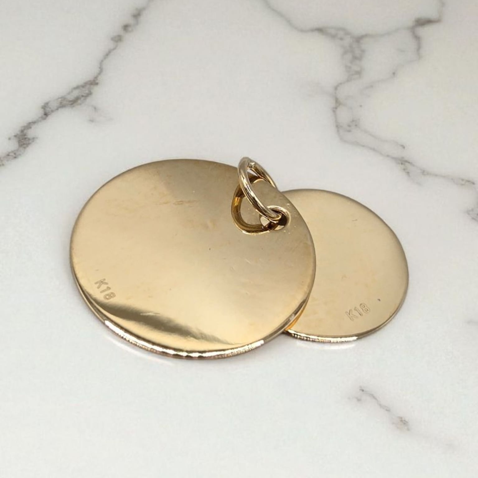 K18 10mm 14mm 丸型板抜きペンダントです。